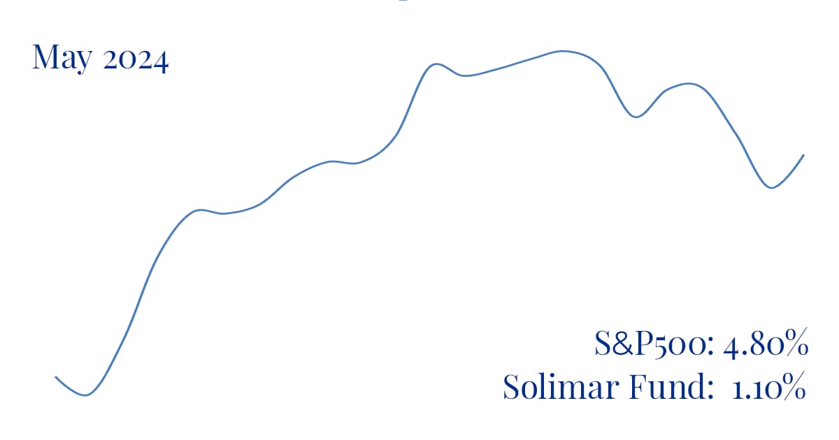 Solimar Fund returned 1.10% net of fees for the month of May compared to the S&P 500’s return of 4.80%. Our YTD return remains solid at 11.70% net of fees compared to S&P 500’s YTD return of 10.64%.